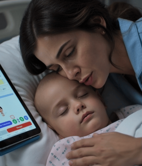 Ofertamos o aplicativo Acura para melhorar a comunicação e a integração entre várias pessoas que corroboram na jornada rumo à vitória sobre o câncer, organizando informações dentro do hospital e em casa.