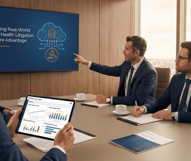 Acura muda esse jogo. Não é apenas um aplicativo de saúde; é um repositório de dados estruturados da vida real (Real-World Evidence - RWE).